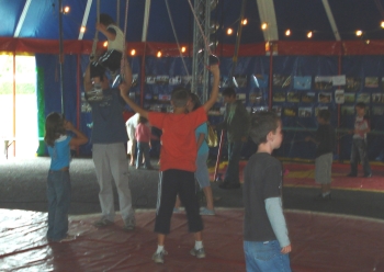 chapiteau rempli d'enfants, ravis et emerveillés.... Bravo les