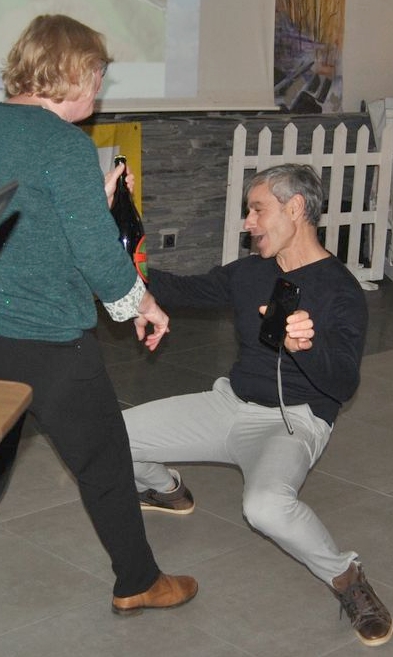 Stéphanie et les Froment qui esquissent un pas de danse