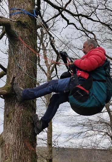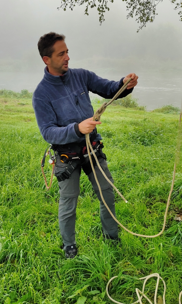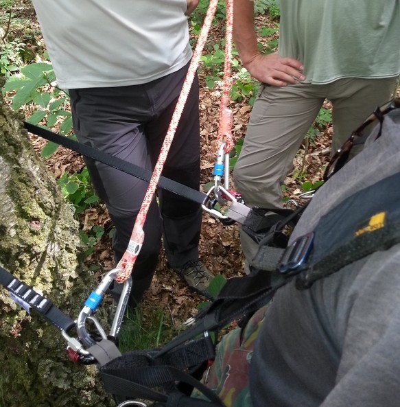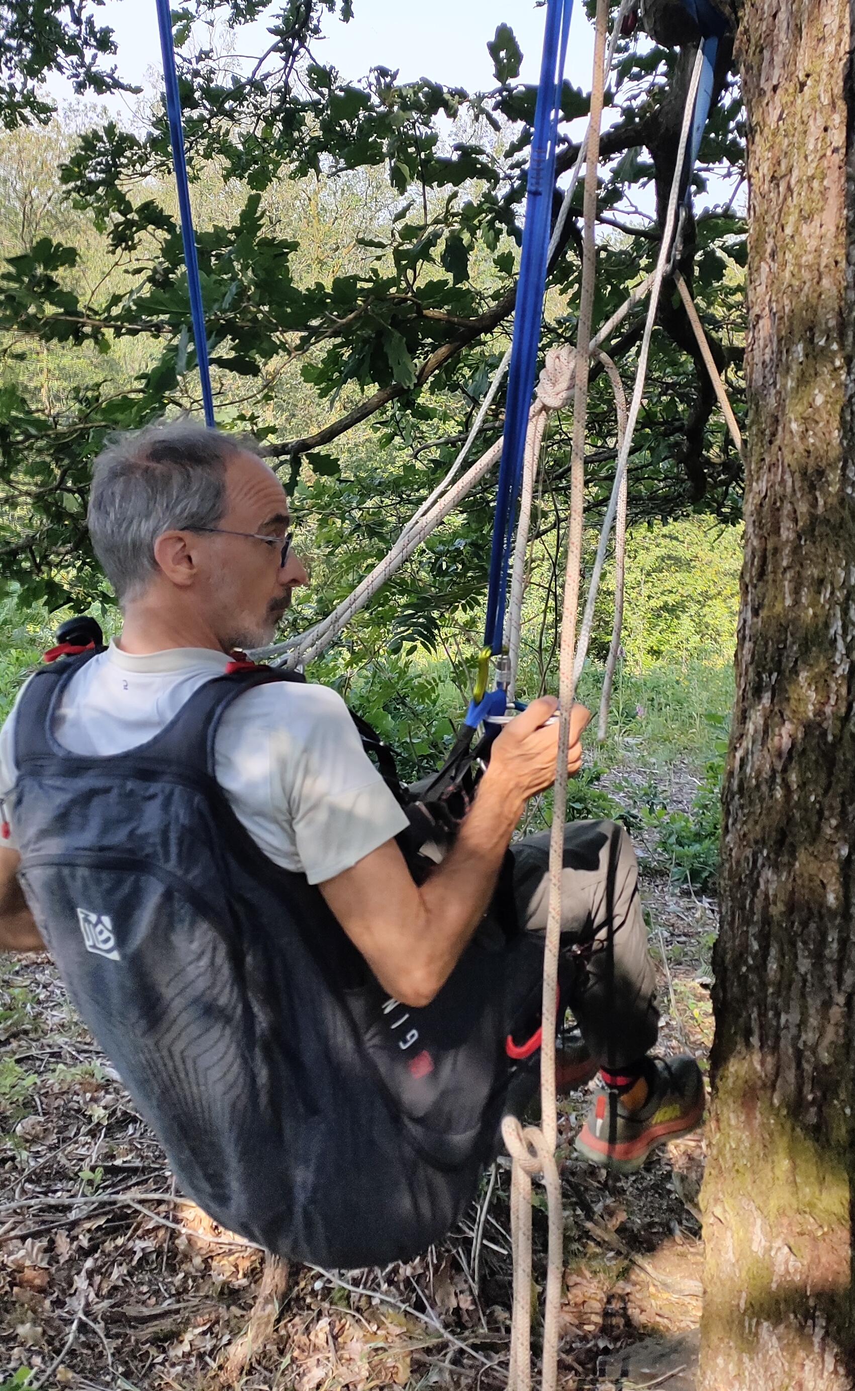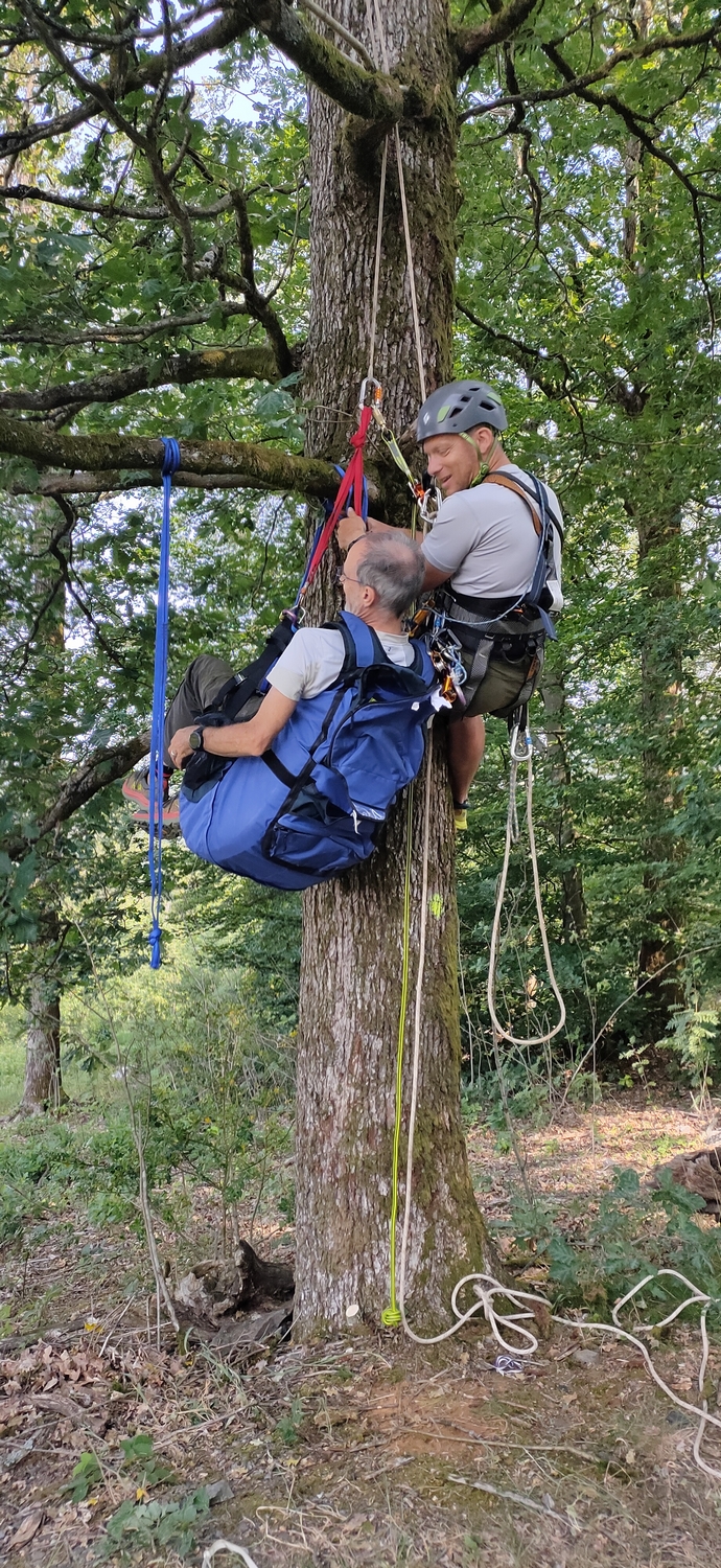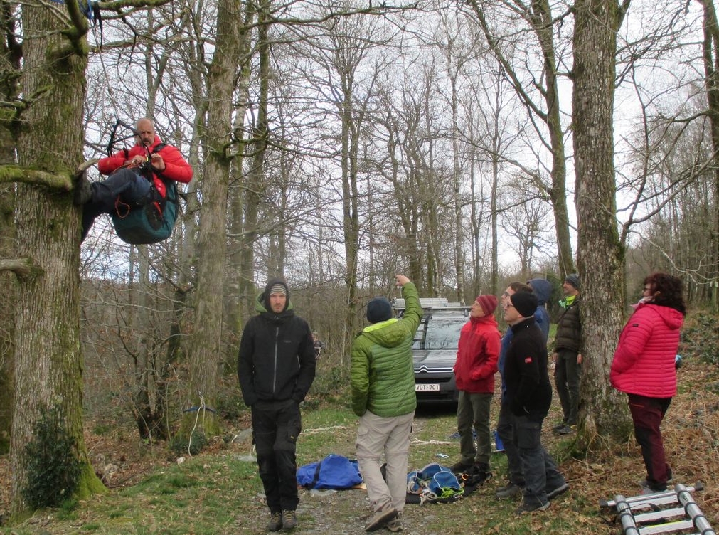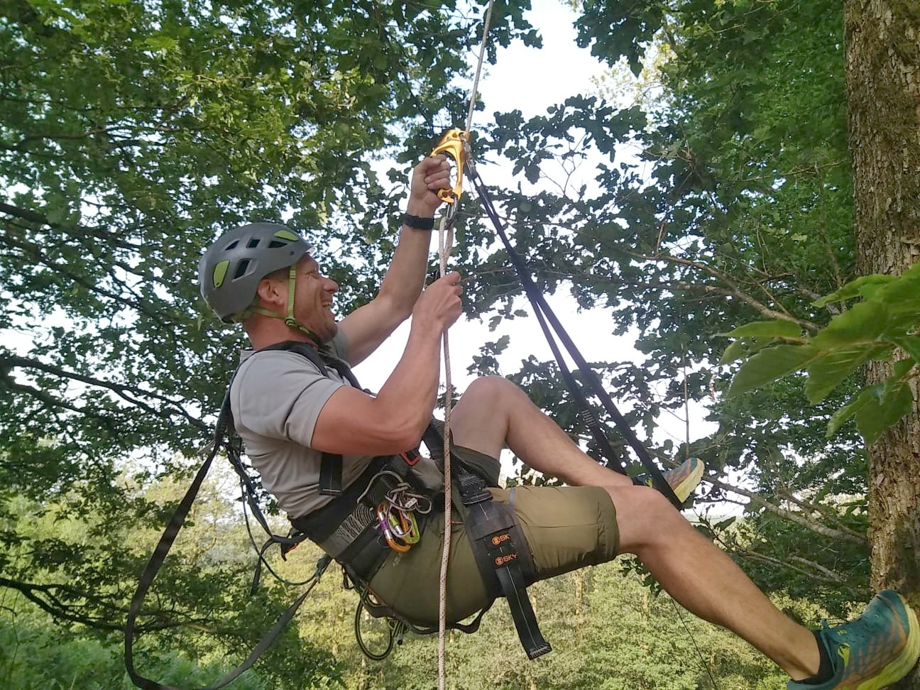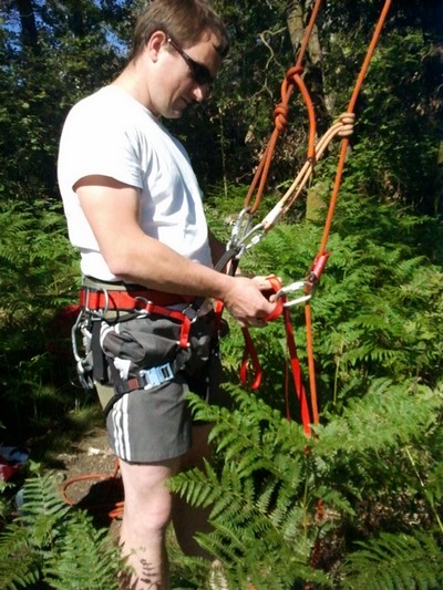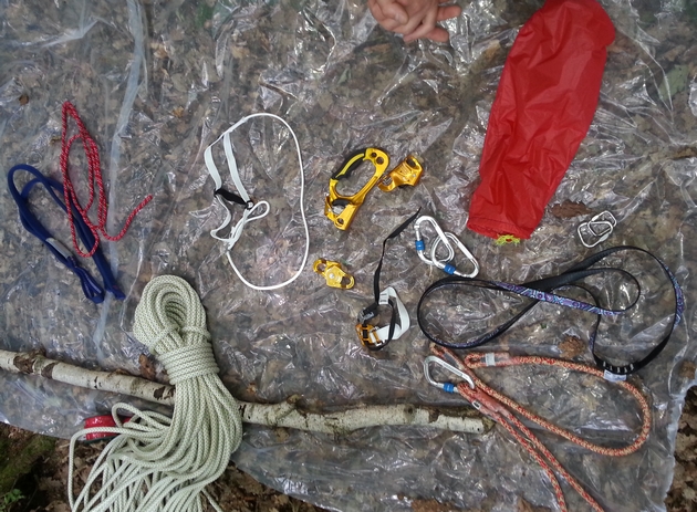 Baudrier, mousquetons, corde, scie, cordelette, sangles, sac à lancer,