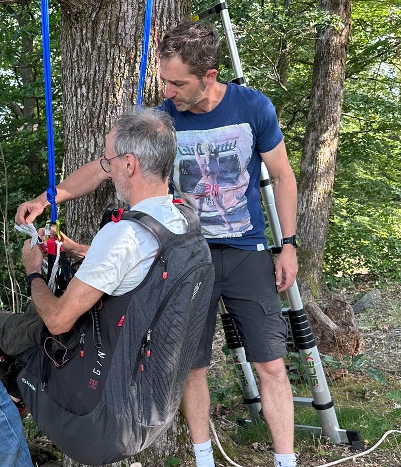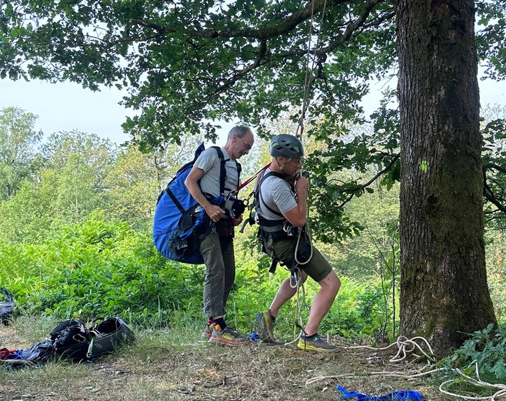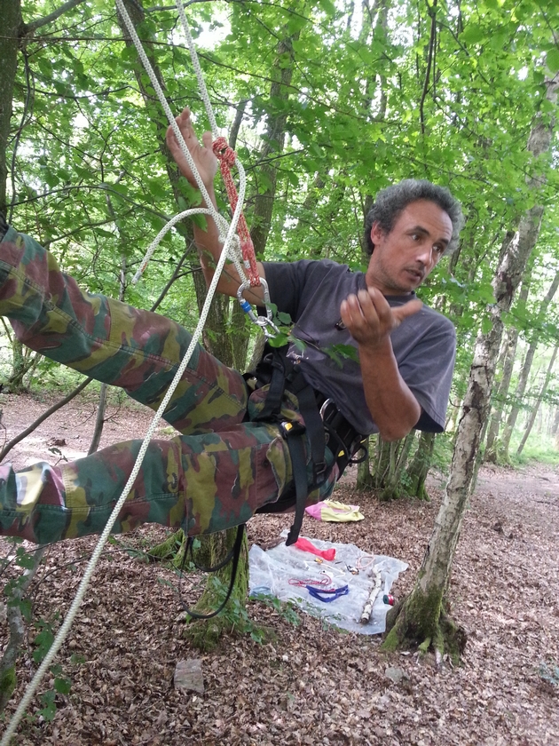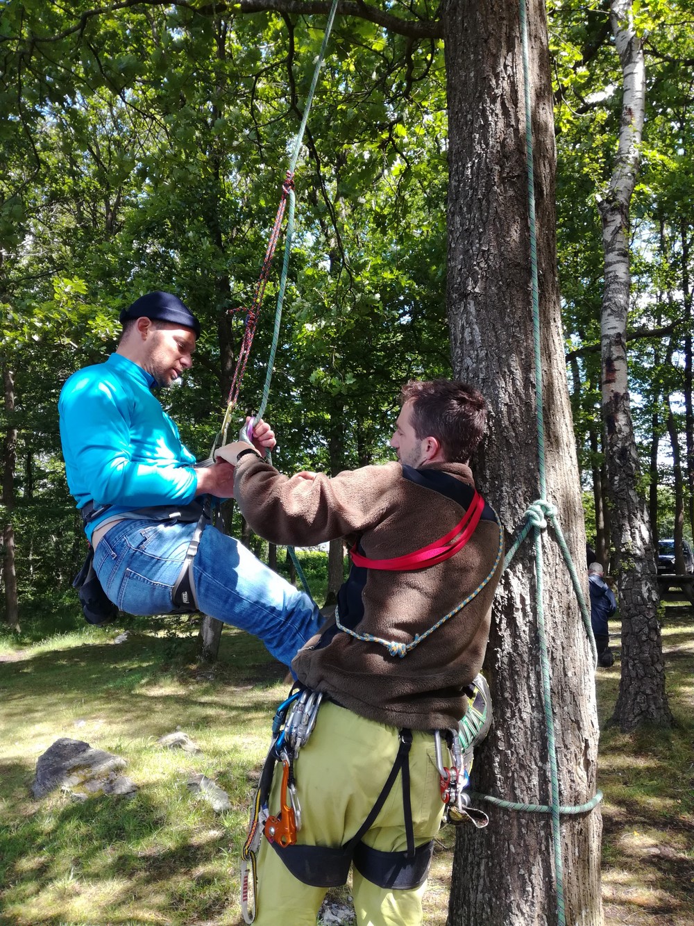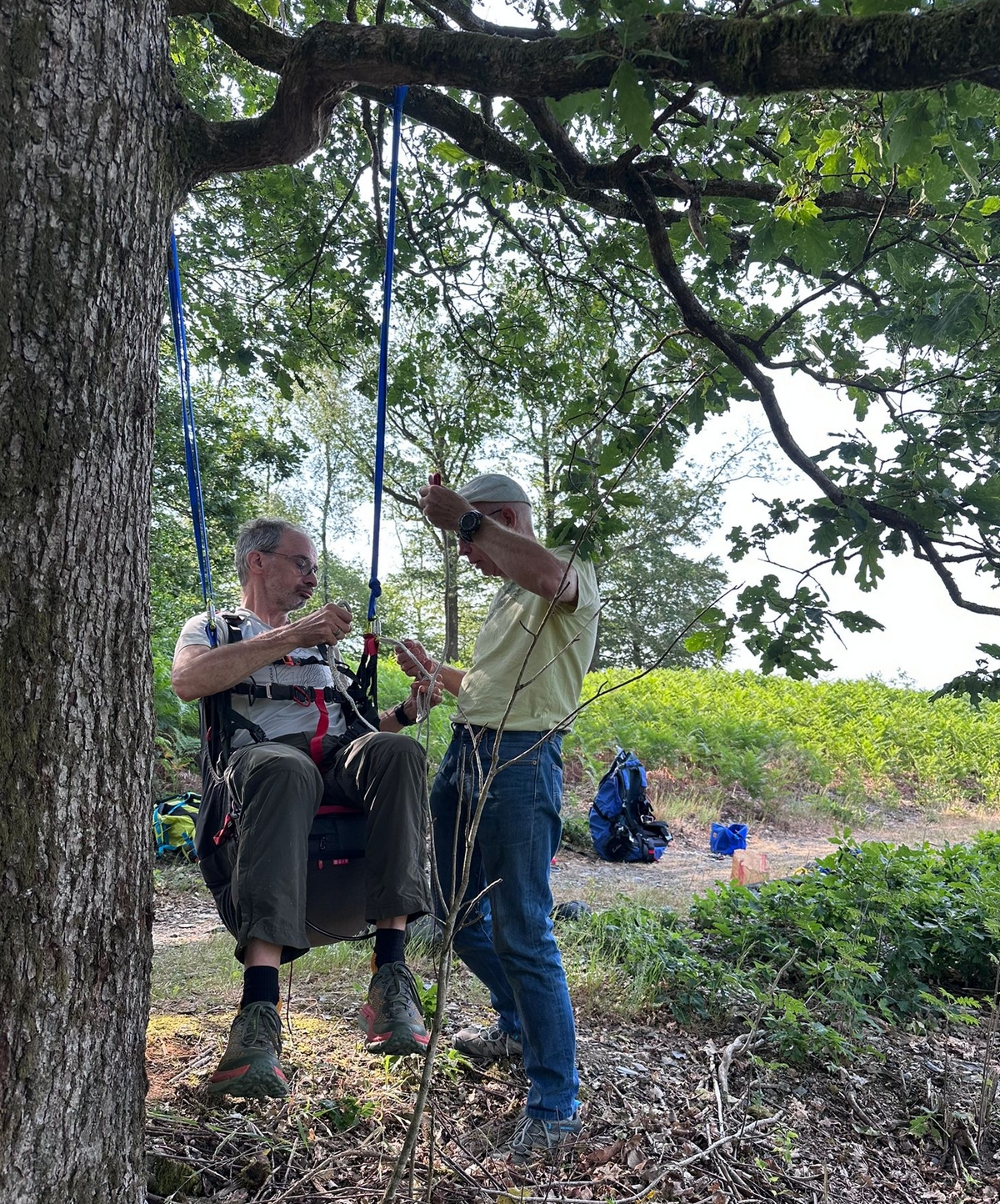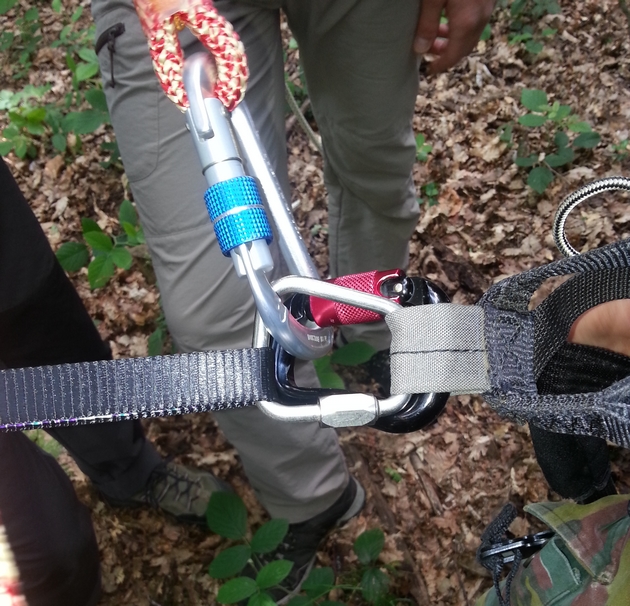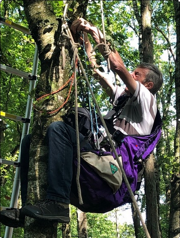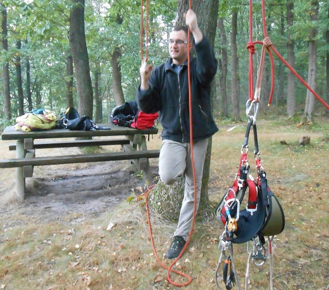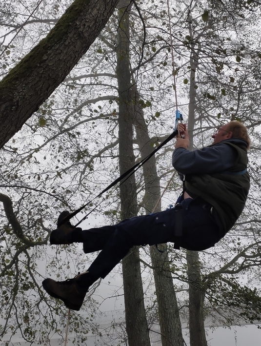 Baudrier, mousquetons, corde, scie, cordelette, sangles, sac à lancer,