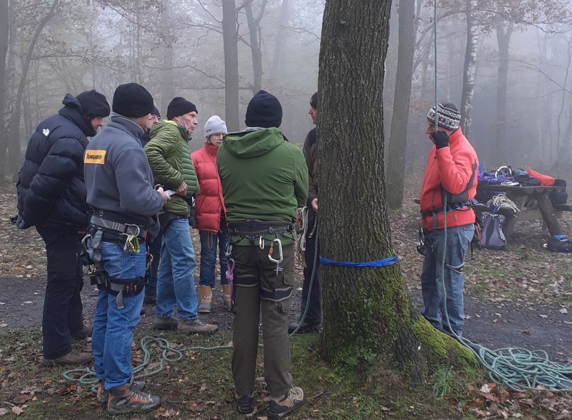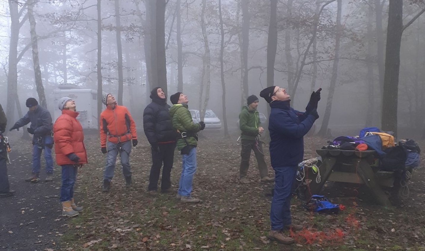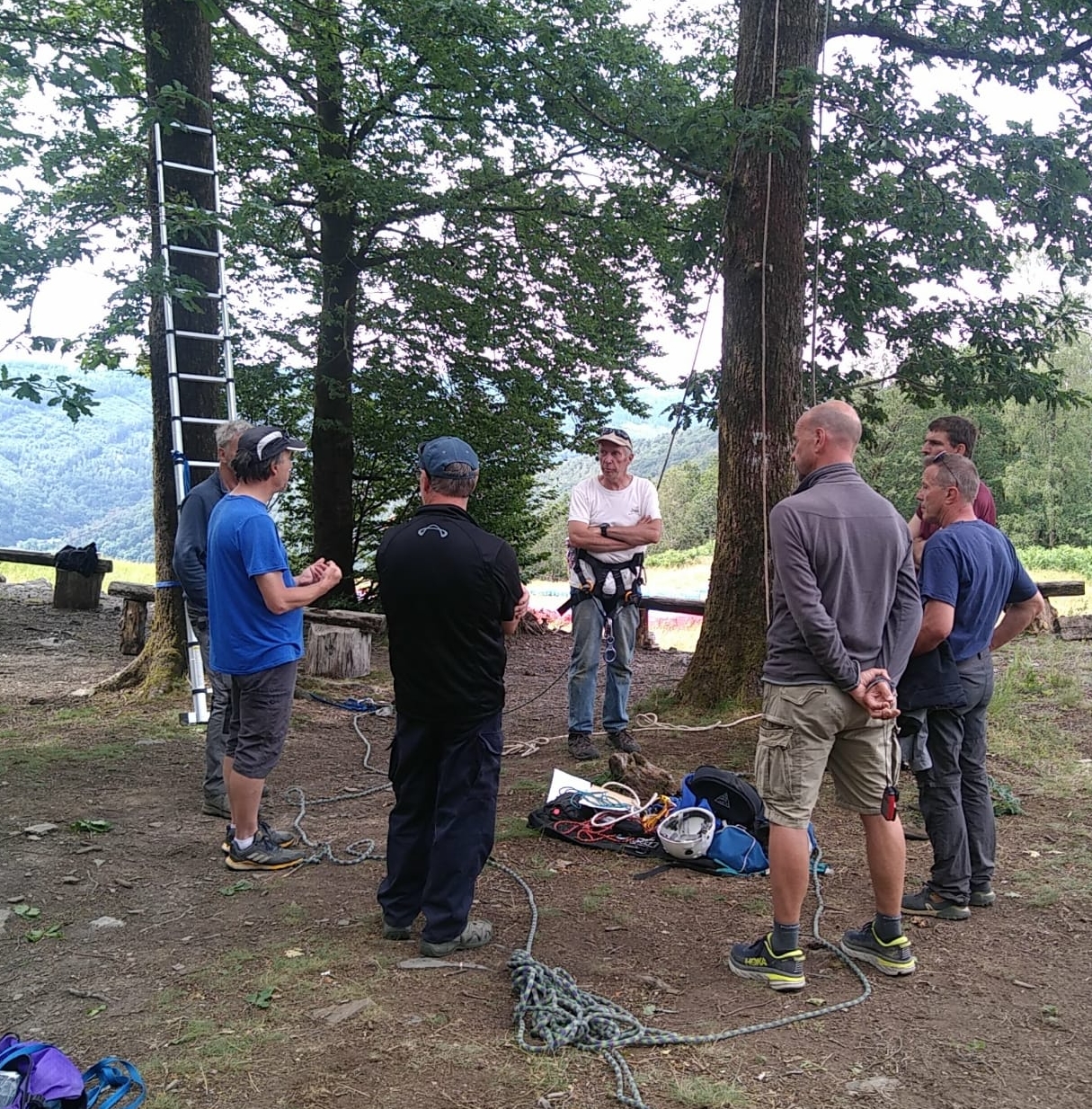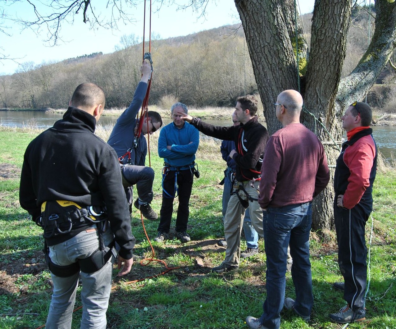 Petit groupe en briefing sécu : que faire en cas de branchage ?