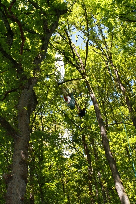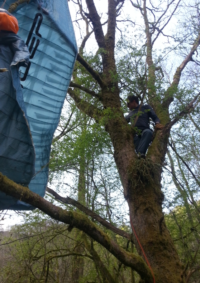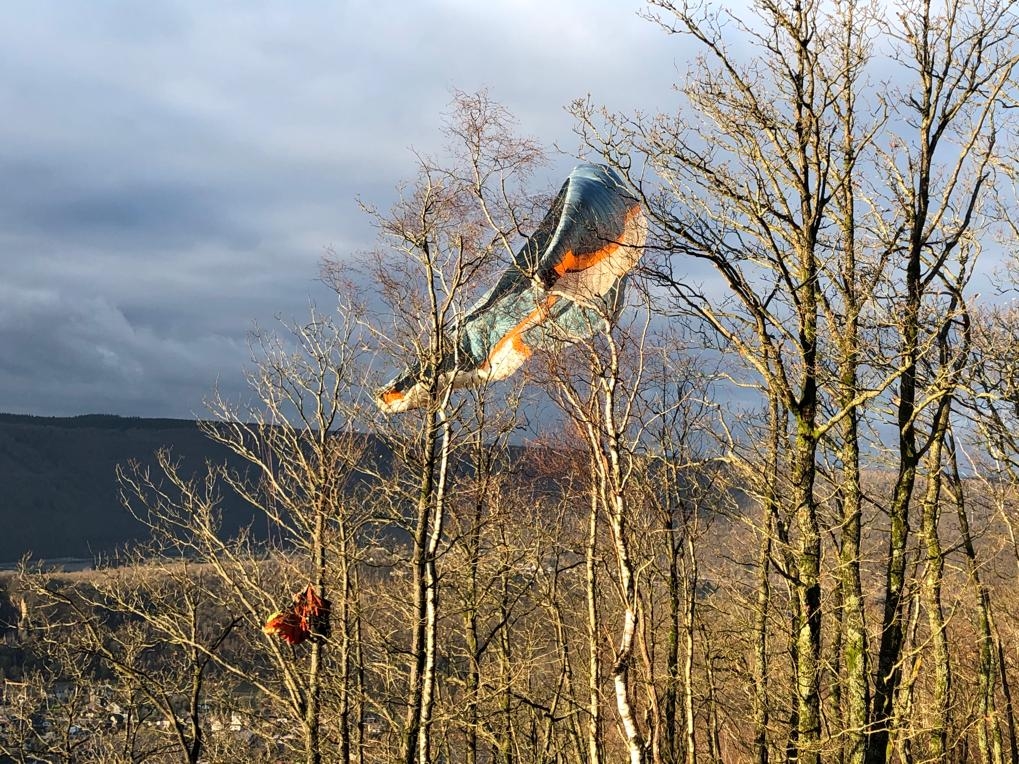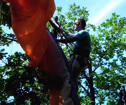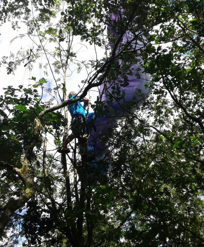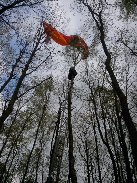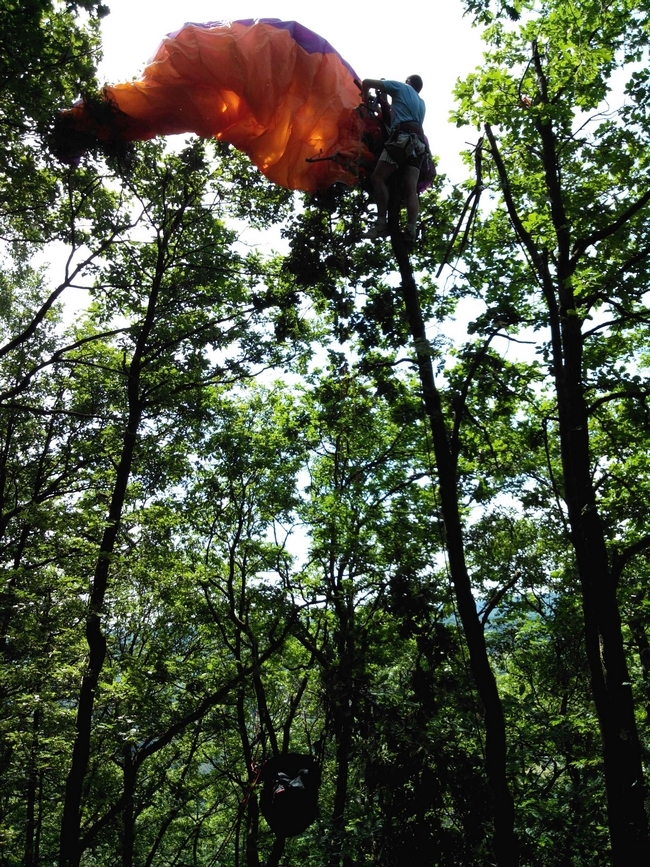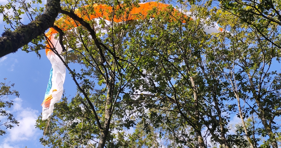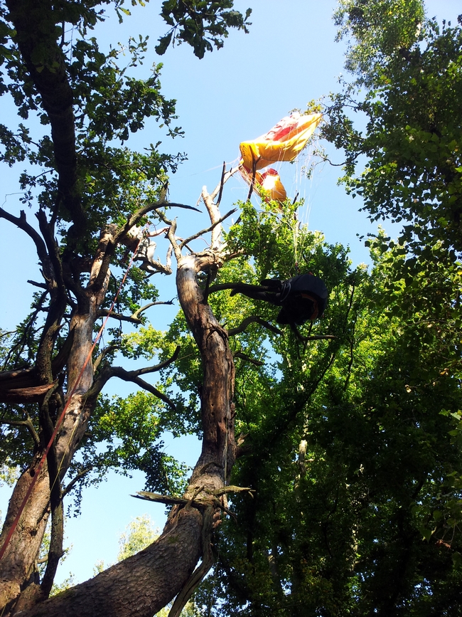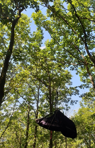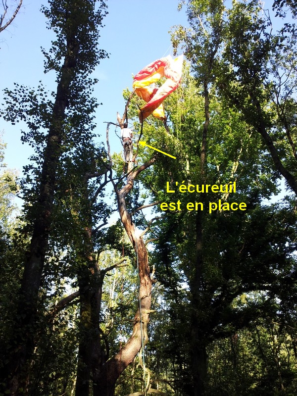 Sous le déco, le pilote est au sol, la voile dans les cimes et les écureuils en chemin...