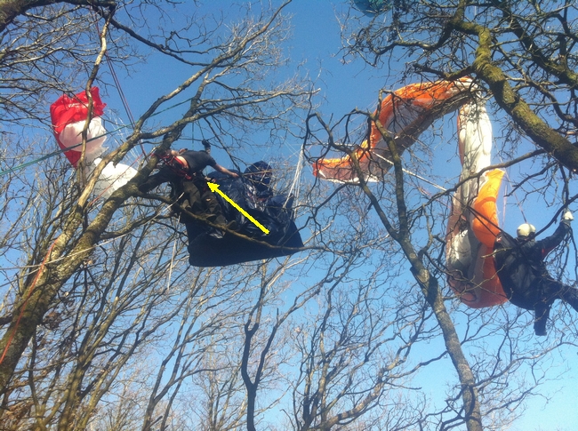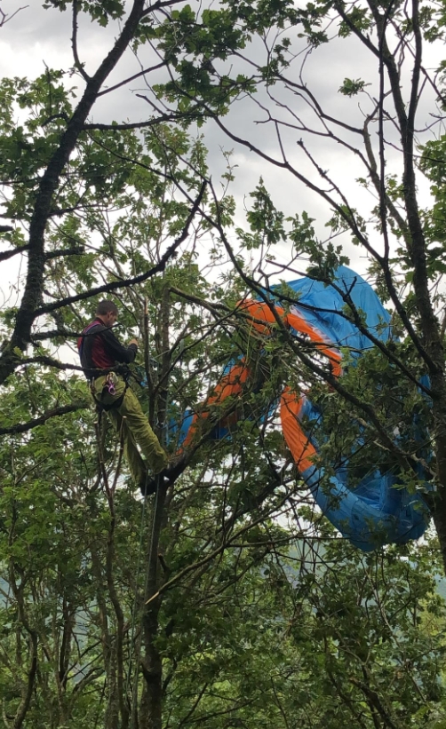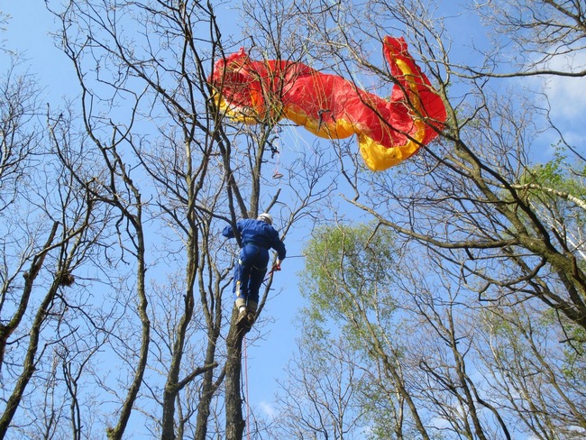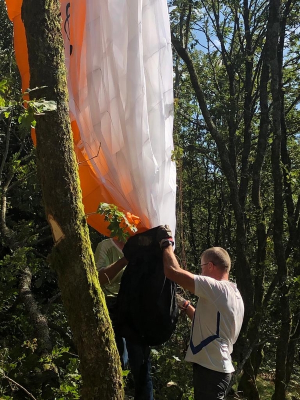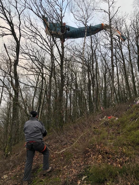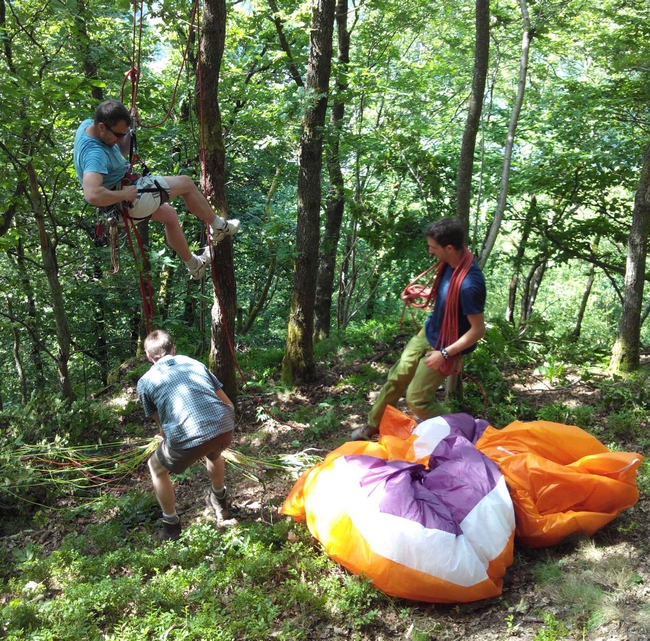 Avec les mêmes solutions, descente en sécurité du pilote, puis de la voile,