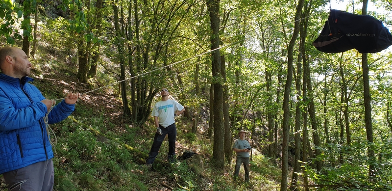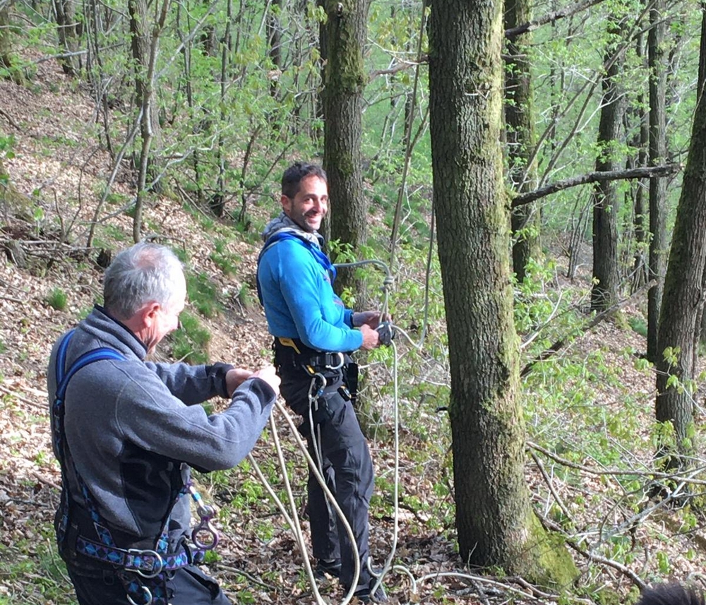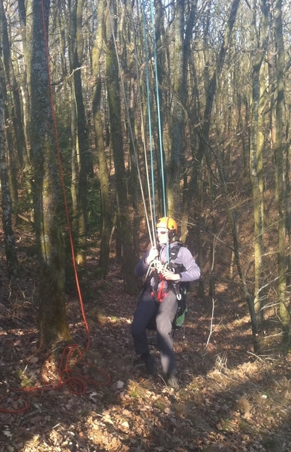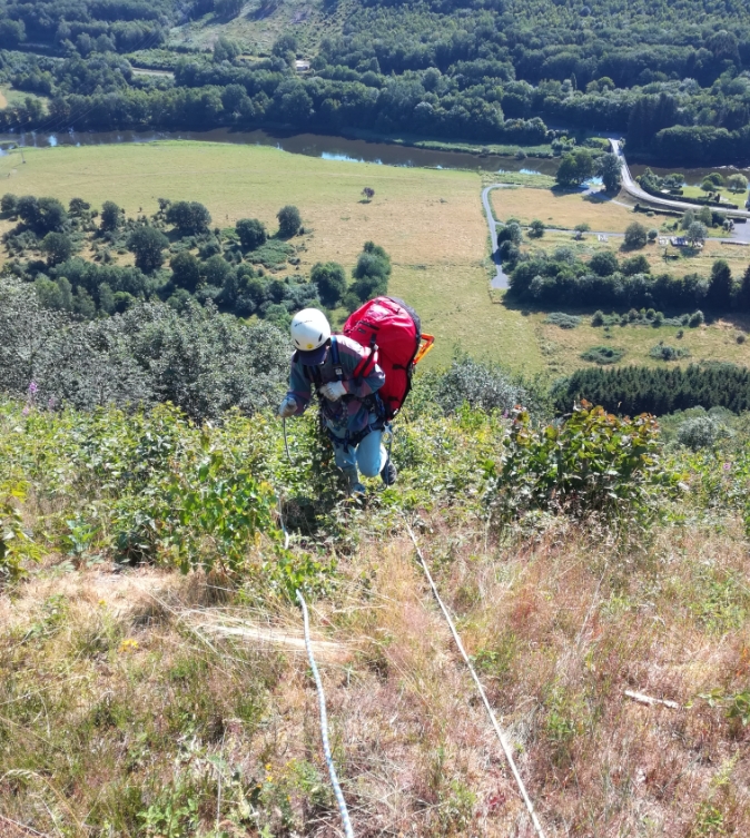 Sa descente ensuite se fera sans proclème, il maitrise les nœuds et pratique l'escalade.