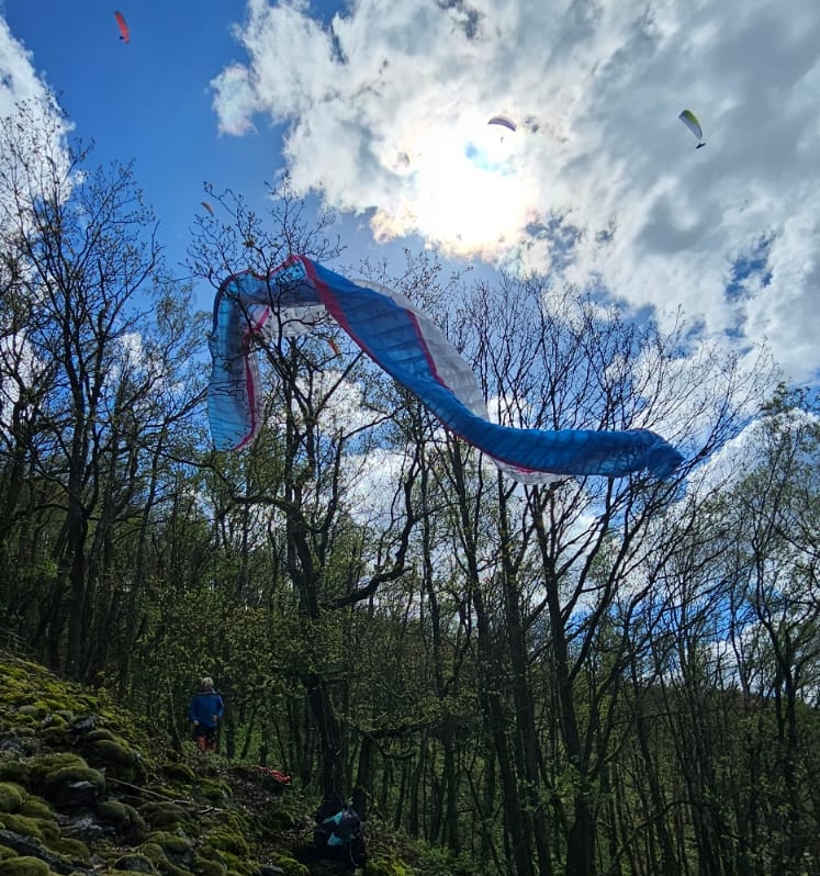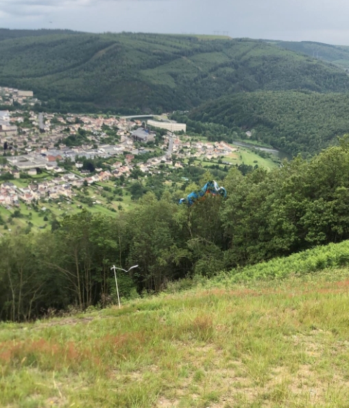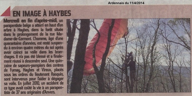 Pilote près du sol, voile perchée, puis décrochée à Haybes.