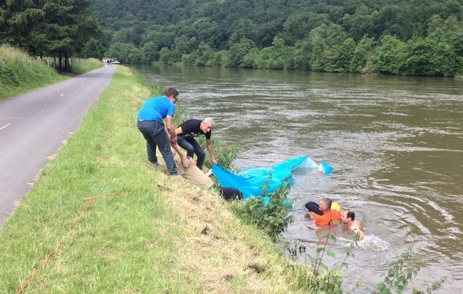 L'écureuil du jour parvient à lui lancer une cordelette, puis il hisse une corde.