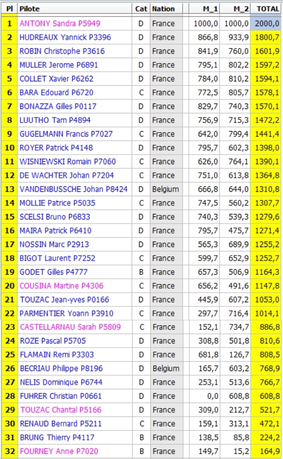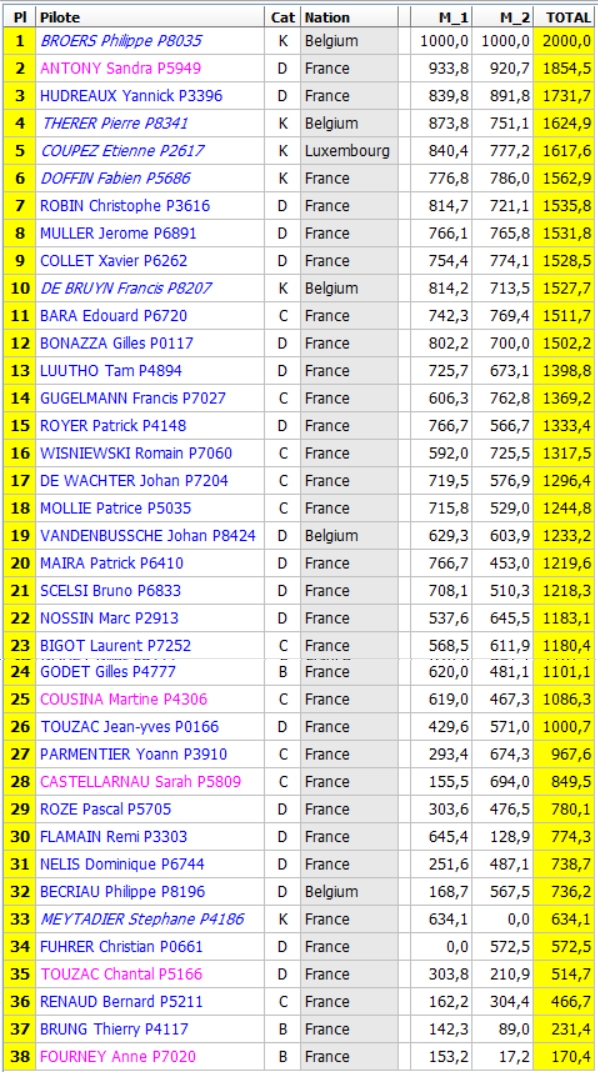 Classement Open