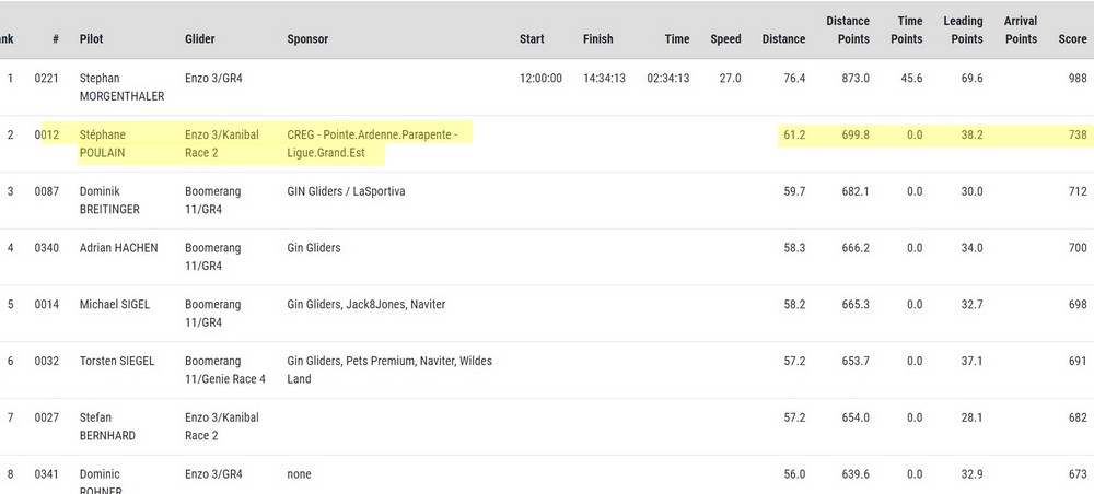 Resultats de la manche