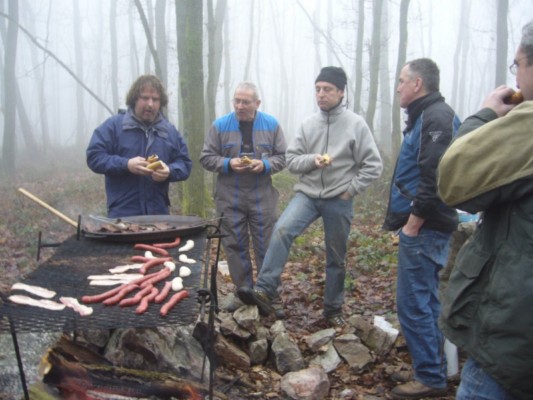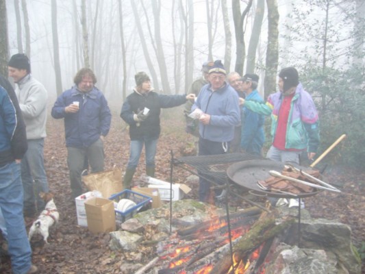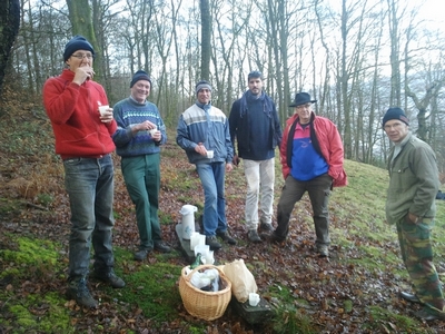 Les bénévoles au casse croûte, (il en manque : 2 qui bossaient et 1 qui prend la photo)