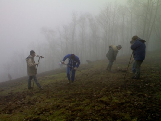 Plusieurs équipes se mettent au boulot... Chargement du remblai
