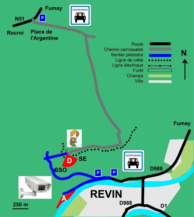 EDF enfouie a l'extrémité ouest du terrain, mais traverse la Meuse.